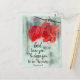 Auf der Postkarte des Inspirationsziels wird ein Zweig mit schönen roten Herbstblättern dargestellt und die Bibel Verse 1 Thessaloniki 1:4, "Gott Liebe dich.. Er wählte dich zu Seinem eigenen.