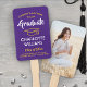 Fügen Sie eine coole personalisierte Touch zu einer Uni oder High School Abschlussfeier mit diesen maßgeschneiderten Foto lila- und goldgelben Handventilatoren hinzu. Design zeigt ein Bild des Absolventen, stilvolle moderne Typografie, handgeschriebene Schriftzeichen-Kalligrafie und eine anpassbare Nachricht mit dem Text "Herzlichen Glückwunsch an unseren Absolventen". Der Text am unteren Ende beinhaltet das Klassenzimmer, den Namen der Schule und eine optionale Zeile für den Abschluss, die Ehre, oder Lieblings-inspirierendes Zitat, danke Mama und Papa, oder andere Informationen. Der gesamte Text ist einfach zu personalisieren. Eine elegante und individuell gestaltete Idee für Graduiertenfavoriten und Dekorationen und eignet sich hervorragend zur Darstellung eines beliebten Fotos, wie z.B. eines Seniorenbildes oder eines Bildes aus der Anlaufzeremonie. Herzlichen Glückwunsch an den Absolventen!