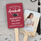 Fügen Sie eine coole personalisierte Touch zu einer Uni oder High School Abiturparty mit diesen individuellen Foto-Rot-, Weiß- und Schwarzhand-Fans hinzu. Das Design zeichnet sich durch ein Bild des Absolventen, eine schwarze Mörtel-Kappe, stilvolle moderne Typografie, handgeschriebene Schriftzeichen-Kalligraphie und eine anpassbare Nachricht mit dem Titel "Herzlichen Glückwunsch an unseren Absolventen" aus. Der Text am unteren Ende beinhaltet das Klassenzimmer, den Namen der Schule und eine optionale Zeile für den Abschluss, die Ehre, oder Lieblings-inspirierendes Zitat, danke Mama und Papa, oder andere Informationen. Der gesamte Text ist einfach zu personalisieren. Eine elegante und individuell gestaltete Idee für Graduiertenfavoriten und Dekorationen und eignet sich hervorragend zur Darstellung eines beliebten Fotos, wie z.B. eines Seniorenbildes oder eines Bildes aus der Anlaufzeremonie. Herzlichen Glückwunsch an den Absolventen!