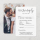 Teilen Sie mit diesen eleganten und vielseitigen RSVP-Karten eines Ihrer Verlobung- oder Hochzeitskarten-Fotos. Bild und Text sind einfach zu anpassen. (IMAGE PLACEMENT TIP: Eine einfache Möglichkeit, ein Foto genau so zu zentrieren, wie Sie es gewollt haben, ist es, es einzuschneiden, bevor Sie es auf die Zazzle-Website hochladen.) Die Karte beinhaltet Wahlmöglichkeiten, Lebensmittelallergien, Songanfragen und die Möglichkeit, online über eine Website oder E-Mail-Adresse zu antworten. Alle Antwortinformationen können personalisiert oder gelöscht werden. Das Schwarz-Weiß-Design besticht durch moderne minimalistische Typografie, handgeschriebene Skriptkalligraphie und ein Bild Ihrer Wahl. Diese Karte ist eine stilvolle Möglichkeit, Hochzeitsgäste fragen, um freundlich auf Ihre bevorstehende Feier zu antworten.