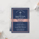 Ankündigen Sie die Geburt Ihres kleinen Mädchen und laden Sie Familie und Freunde zur Taufe mit diesem eleganten Foto Marine blau und Imitats Rose Gold-Folie Einladung. Der gesamte Text ist einfach zu verändern, sodass er jede Formulierung in Bezug auf den Dienst und den Empfang enthalten kann. Diese kombinierte Taufeinladung und Geburtsankündigung ist eine schicke und elegante Art, alle Informationen auf einer Karte zu teilen, anstatt auf zwei. Das marineblau-rosa Design bietet 1 Foto Ihrer Wahl, Imitate Bändchenüberlagerung, stilvolle Kunst Deko inspiriert Typografie und moderne Skriptkalligraphie. Foto und Geburtsdaten, wie Anreisedatum, Gewicht und Länge des Kindes, werden auf der Rückseite angezeigt. Bitte beachten Sie, dass Rose Gold in Rosa gedruckt ist, nicht in Metallic. Herzlichen Glückwunsch zur Ankunft Ihres neuen Kleinen!