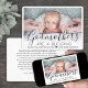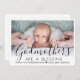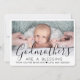 Eine nachdenkliche Art, der Patenmutter deines Babys zu danken, ist ihr ein stilvolles Foto zu schenken, das sie als Sake rette. Alle Bilder und Formulierungen sind einfach zu personalisieren, einschließlich Zitat auf der Vorderseite, in dem es heißt: "Mütter sind ein Segen, danke, dass du meinst." Wenn Sie Ihre Nachricht lieber zurückgeben, schreiben Sie einfach das Beispiel löschen, danke, dass Sie Text notieren. (IMAGE PLACEMENT TIP: Eine einfache Möglichkeit, ein Foto genau so zu zentrieren, wie Sie es gewollt haben, ist es, es einzuschneiden, bevor Sie es auf die Zazzle-Website hochladen.) Diese individuell gestaltete Grußkartenvorlage bietet moderne minimalistische Typografie, handgeschriebene Schriftzeichen-Kalligraphie und ein Bild Ihrer Wahl. Das schwarz-weiße, geschlechtsneutrale Design eignet sich für Patenmädchen, Patenschaftsväter, Babys oder Mädchen. Es ist ein einzigartiger und eleganter Weg, um den Pateneltern nach einer Taufe, Taufe oder anderen Anlässen im Leben Ihres Kindes Dankbarkeit auszudrücken.