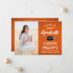 Teilen Sie die Freude eines Gymnasiums oder Uni-Abschlusses mit diesen individuellen Foto-Ankündigungen in Orange, Weiß und Schwarz. (IMAGE PLACEMENT TIP: Eine einfache Möglichkeit, ein Bild genau so zu zentrieren, wie Sie es gewollt haben, ist es, es einzuschneiden, bevor Sie es auf die Zazzle-Website hochladen.) Diese Vorlage ist einfach mit jedem beliebigen Wortlaut Ihrer Wahl, wie z. B. Party Einladung, Eltern-Namen, Sonderehren, Studientitel, bevorzugten inspirierenden Zitat, Kontaktinformationen für Absolventen, künftige Bildungen oder neue Stellenangebote, anzupassen. Wenn ein Text nicht gewollt ist, löschen Sie ihn einfach. Das Design umfasst einen orangefarbenen Hintergrund, eine schwarze Mörtel-Kappe, handgeschriebene Schrift-Kalligraphie, eine elegante moderne Typografie und ein Foto Ihrer Wahl, wie z.B. ein Seniorbild oder ein Bild aus der Anlaufzeremonie. Diese eleganten Ankündigungskarten für Abschlüsse sind eine stilvolle Möglichkeit, Ihre Feier mit Freunden und Familie zu teilen. Herzlichen Glückwunsch an den Absolventen!