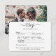Teilen Sie mit diesen eleganten und vielseitigen RSVP-Karten eines Ihrer Verlobung- oder Hochzeitskarten-Fotos. Bild und Text sind einfach zu anpassen. (IMAGE PLACEMENT TIP: Eine einfache Möglichkeit, ein Foto genau so zu zentrieren, wie Sie es gewollt haben, ist es, es einzuschneiden, bevor Sie es auf die Zazzle-Website hochladen.) Die Karte beinhaltet Wahlmöglichkeiten, Lebensmittelallergien, Songanfragen und die Möglichkeit, online über eine Website oder E-Mail-Adresse zu antworten. Alle Antwortinformationen können personalisiert oder gelöscht werden. Das Schwarz-Weiß-Design besticht durch moderne minimalistische Typografie, handgeschriebene Skriptkalligraphie und ein Bild Ihrer Wahl. Diese Karte ist eine stilvolle Möglichkeit, Hochzeitsgäste fragen, um freundlich auf Ihre bevorstehende Feier zu antworten.