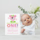 Die erste Geburtstagskarte Unser kleines rosa Monster Party Einladung Card ist bereit, auf Ihre Event-Besonderheiten angepasst zu werden. Anerkennung für Kristi W Design.