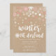 Geburtstags-Einladungskarte des niedlichen Winters erste mit Kraftpapierhintergrund und -schneeflocken für ein themed Party des rustikalen Winters. Karo unser Geschäft für zusammenpassende Einzelteile.