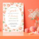 Diese reizvolle Einladung mit Pfirsichen, Blume und Grünpflanzen in Aquarellfarben lädt zum ersten Geburtstag Ihres kleinen Mädchens ein.