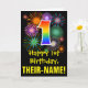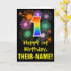 Die Vorderseite dieses aufregenden, lustigen und bunten Geburtstagskarten-Designs zeigt eine große Zahl "1" mit einem inspirierten Regenbogenspektrum-Farbverlauf, zusammen mit der Meldung "Happy 1st Birthday" und einem bearbeitbaren Empfängernamen. Die Vorderseite weist zusätzlich ein farbenfrohes Hintergrundmuster auf, das durch das Aussehen eines berstenden feierlichen Feuerwerks inspiriert wird. Im Inneren befindet sich eine individuell angepasste Geburtstagsgrüßbotschaft, oder man könnte sie löschen und leer verlassen werden, wenn eine Nachricht von Hand geschrieben werden soll. Eine individuell anpassbare Geburtstagskarte wie diese könnte eine lustige Art sein, eine Nachricht zu senden, die den ersten Geburtstag von jemandem feiert. [~Z0000442]
