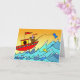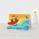 Glückliche 1. Geburtstagskarte. Ein brauner Bär versucht, einen gelben Fisch zu fangen, behalte aber, eine große Zahl 1 zu fangen. Geburtstagsgrüße für einen Einjährigen. Digitale Darstellung mit Boat, Bär, Party, Gelbfisch und Wasserwellen mit weißen Armaturen. Bild und Vers © Shoaff Ballanger Studios.