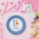 Diese 1. Geburtstagspapier-Teller haben eine niedliche Giraffe und ein blaues Vogeldesign. Diese Teller sind Teil einer Sammlung, die andere passende Geburtstagsgegenstände enthält. Bitte besuchen Sie die Sammlungs-Seiten in unserem Geschäft, um das komplette Sortiment zu sehen.