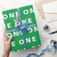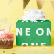 Einfaches, elegantes, grünes Packpapier zum 1. Geburtstag. Ideal für einen Jungen. 1. Geburtstag Party.