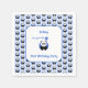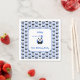 Eine Geburtstagserviette für eine einjährige Geburtstagsparty. Der Text ist vollständig editierbar: Name, Beschriftung, Gruß. Das Design umfasst einen lächelnden Panda mit einem blauen Ballon, auf dem die Abbildung 1 steht. Ein weiteres Muster von Pandas auf hellblauem Hintergrund umgibt das Hauptdesign.