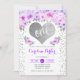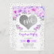 1. Geburtstag - Silberherz Weiße Lila Blüte Einladung
