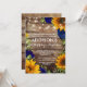 Sonnenblumen & Rose Rustikale Holzleuchten Einladung mit gelben Sonnenblumen, marinösen Rose und Babyatmen. Ein rustikaler Holzfußboden mit funkelnden Märchenleuchten und kursiver Herzgestaltung. Matching-Produkte verfügbar.