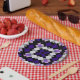 1 geometrisches Muster, geometrisch, verziert, abstrakt, lila, grau, rosa, kombiniert, ethnisch, dreieckig, einfach, skandinavisch
