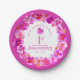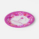 Rosa Blumen erste Hochzeitstag Papier Teller. Personalisieren Sie diese Jubiläums-Teller mit Ihren eigenen Paarnamen und Ehedaten. Weitere passende Artikel sind ebenfalls verfügbar. Die erste Jubiläumsfeier Blume ist traditionell die Panik und Rosa wird mit der Liebe des ersten Jahres assoziiert. © Original Aquarellmalerei und Design von Sarah Trett für www.mylittleeden.com und www.mylittleedenweddings.com auf Zazzle.
