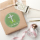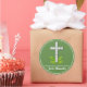 Pearl white cross auf grünen Grüntönen auf einem moosgrünen Hintergrundaufkleber! Perfektes Design für Erste Kommunion, Taufe, Weihnachten, Dedication Gastgeschenke Aufkleber und vieles mehr. PASSENDE Artikel in unserem Geschäft.