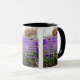 Diese zweifarbige Tasse weist ein Design auf, das einen Sans-Print-Schriftart mit lila Buchstaben silberfarbene Kontur zeigt, die die KJV-Bibelschrift "1 Corinthians 12:3" zeigt, über ein Bild, das einen niedlichen Welpen zeigt, der durch ein Blume-Bett mit violetten Blumen und grünen Blättern im Hintergrund dieses religiösen Motivs geht. Dieser Vers bezieht sich auf das Buch 1 Korinther 12. Kapitel zeigt den 3. Vers in diesem Bibel Zitat Thema aus der King James Bibel. Die Felgen & Griffe sind in passenden Farbtönen in Mikrowellen- und Geschirrspüler-Keramik in 11 Unze- oder 15 Unzen-Größen erhältlich.