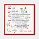 Dieses Design enthält das Neue Testament Bibel Verse 1 Korinther 13:4-8 in schwarz und rot mit fünf rot-grünen Blume dekoriert. "Liebe ist geduldig, Liebe ist nett, sie beneidet nicht, prahlt nicht, ist nicht stolz, benimmt sich nicht unangemessen, sucht sich nicht seinen eigenen Weg, wird nicht provoziert, berücksichtigt das Böse nicht, freut sich nicht über Ungerechtigkeit, sondern freut sich über die Wahrheit. Liebe trägt alles, glaubt alles, hofft alles, hält alles. Liebe versage nie."