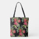 Die Tasche mit Inspiration zitiert die Totenschrift und zeigt ein lässiges, im Gartenstil gehaltenes Blumendesign mit schlichten Rot- und Rosatönen, Beeren und Grün mit schwarzem Hintergrund. Es zeigt Bibel Verse 1 Korinther 13:4, "Liebe ist geduldige Liebe ist gütig."