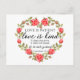 Liebe ist geduldig, Liebe ist nett. Es beneidet nicht, es prahlt nicht, es ist nicht stolz. 1 Korinther 13:4 Bibelverse über Liebe mit Blumenzauber Rose Herzkranzdesign. Gutes Geschenk für Familien und Freunde.