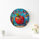 #1 Lehrer Appreciation Illustration Clock Celebrate Pädagogen mit dieser lebendigen und fröhlichen "#1 Teacher" Illustration! Mit einem niedlich lächelnden Apfel, bunten Stiften, einem Regenbogen, einer Uhr und einem Notizbuch strahlt dieses Design Dankbarkeit und Kreativität aus. Ideal für Geschenke für Lehrer, Dekoration im Klassenzimmer, Tasse, Tasche und mehr. Hell, spielerisch und voller Herz - Ehre deinen Lieblingslehrer mit diesem skurrilen, schulischen Thema