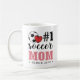 Kaffeemaschine für eine Fußball-Mama mit einem charmanten Typografie-Design mit rotem Herz und MAMA in rosa Buchstaben. Jahr hinzugefügt. Kaffee Tasse für die Fußball-Mama Nummer eins personalisiert mit dem Jahr, in dem sie Fußball-Mutter wurde.