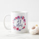 Zeigen Sie Ihrer Mutter Ihre Liebe mit unserer blühenden Tasse #1 Ihrer Mutter. Unser Design zeichnet sich durch unseren schönen rosa und lila Blumenkranz und Schmetterlinge aus. "#1 Mama" wird in einem schönen Skript-Schriftart im Pinselstil angezeigt. Alle Illustrationen sind handgezeichnet Originalwerke von Moodthology.