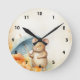 1 Maus mit blauem Schirm orange-rosa Blume Runde Wanduhr