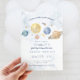 Erste Reise rund um die Sonne Geburtstag Einladung mit Mond, Planeten, Sternen und ein wenig Rocketship. Perfektes 1. Geburtstag Party Thema für Ihr Baby verwandeln eins! Du wirst über dem Mond sein und dich freuen zu feiern. Der gesamte Text ist editierbar - personalisieren Sie ihn für Ihr Party.