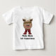 Ein niedliches Ren mit einem roten Bogen wird auf erstem T - Shirt eines Babys Weihnachtsgekennzeichnet, den Sie mit dem Namen des Babys leicht personifizieren können!