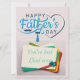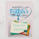 Diese klassische Vatertagskarte zeichnet sich durch ein einfaches Design mit einem großen blauen Herz und einer Krawatte-Abbildung aus. In dem Text steht: "Glücklicher Tag des Vaters zum besten Vater aller Zeiten." Es ist eine herzliche Art, dem Vater zu sagen, wie wichtig es Ihnen ist.