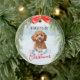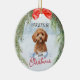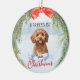 Niedliches, apricotes goldenes Cavapoo - doodle Design mit Kiefernkränzrahmen für Weihnachtsfeiern. Sie haben die Möglichkeit, das Hundespikcy behalten oder mit Ihrem eigenen Foto zu ersetzen. Fügen Sie Ihren Haustiernamen / Jahr durch Bearbeiten der Textvorlage. Eine tolle Geschenkidee für Hundefreunde.