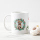 Niedliches, gelbes, Welpenlabrador Retriever Design mit Kiefernrahmen für Weihnachtsfeiern. Sie haben die Möglichkeit, das Labrador-Bild behalten oder mit Ihrem eigenen Foto zu ersetzen. Fügen Sie den Namen Ihrer Haustiere hinzu, indem Sie die Textvorlage bearbeiten. Eine tolle Geschenkidee für Hundefreunde.