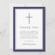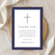 Elegant Navy Blue Cross Boy First Communion Thank You Card.