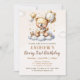 1st Birthday Teddy Bear with Brown Balloons Einladung