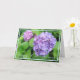 Wish someone happy first wedding anniversary with this classiy customizable hydrangeas card with elegant cursive script / typography (Version 2, with a pale blue frame over the flowers image). Foto von purple and pink hydrangeas. Anmerkung that you can customize this card to match 1st, 3rd, 4th, 5th, 10th, 15th, 20th, 30th, or 50th wedding anniversary. Just change the number on the front and the first line of the text inside. Don't forget to sign your name and change the text if you wish to. You can personalize this card further by changing the foto on the front. Inside, the text reads: "Happy First Anniversary! May your life geht weiter to be filled with love, laughter und dreams come true! Here's to many more blessings and happy years ahead! Love and Hugs, [Your Name]"