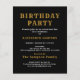 An elegant 21st birthday party celebration invitation. A black and gold elegant template. Personalize and add a name and party details.