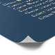 200 Classic Blue Simple Wedding Seating Chart Poster