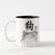 Schwärzen Sie Wäschemalerei von Shiba Inu Hund mit Hundeideogramm mit Tinte. Kundengerechte Zweiton Tasse. Der chinesische Schriftzeichen einfach gemeine "Hund". Vervollkommnen Sie für den Wunsch glücklichen chinesischen neuen Jahres 2018 für jeder oder Geburtstag (die Leute geboren im Hundejahr). ----- "Der Hund (狗) ist einer des 12-jährigen Zyklus der Tiere, die im chinesischen Tierkreis erscheinen, der auf dem chinesischen Kalender bezogen wird. Das Jahr des Hundes ist mit dem irdischen Niederlassungssymbol 戌 verbunden. Das Charakter 狗 bezieht sich das auf tatsächliche Tier, während 戌 auf das Tierkreistier sich bezieht. (...) Können die Leute, die innerhalb dieser Datumsbereiche geboren sind, gesagt werden, im "Jahr des Hundes" geboren gewesen zu sein, beim das folgende elementare Zeichen auch tragen: