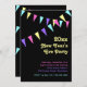 Mehrere Stränge mit farbenprächtigen bunten Flaggen machen diese Einladung hell und feierlich für das Neujahr.
