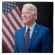 Das Foto erfasst einen Augenblick im Jahr 2021 von Präsident Joe Biden, das Bild ist jetzt eines seiner offiziellen US-Präsidenten-Foto. Sonnenlicht strömt durch ein Fenster und wirft ein warmes Licht auf die Figur eines Biden, der sicher in der Mitte des Rahmens stehend ist. Seine Arme werden überquert, eine Geste, die sowohl Autorität als auch einen Hauch von lässiger Leichtigkeit suggeriert. — Herr Biden ist tadellos in einem blauen Anzug gekleidet, der knusprige Stoff steht in scharfem Kontrast zu den klaren Linien seines weißen Shirts. Eine blau-rot gestreifte Krawatte verleiht dem Ensemble eine Touch Persönlichkeit. — Ein Blick auf Patriotismus ist im Hintergrund erkennbar. Eine amerikanische Fahne steht stolz auf einem Pol zu den links des Mannes, ihre lebhaften Farben einen kühnen Kontrast zu dem kräftigen Schwarz hinter Joe. Ein näheres Bild zeigt ein Gemälde an der Wand, das der beruflichen Atmosphäre eine Touch persönlichen Flairs verleiht. — Präsident Biden ist der Mittelpunkt des Bildes. Sein kurzes weißes Haar umrahmt ein freundliches Gesicht, das an den Linien eines Lebens geätzt ist. Ein warmes Lächeln spielt auf den Lippen und vermittelt ein Gefühl von Selbstvertrauen, Weisheit und vielleicht ein Gefühl von Vergnügen.