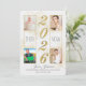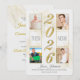 Moderne Ankündigung von 4-Foto-Abschluss in Imitaten Goldblatt und Weiß für die Absolventen. Weiche Farnblattakzente und ein Ort für zwei Fotos von Ihrem Jungen oder Mädchen, als sie jung waren und zwei aktuelle Fotos mit Sondertext. Klasse 2022