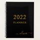 2022 Black Gold Girly Script Monogram Name Modern Planer