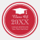 Aufkleber für Abschluss mit Graduiertenhut / -kappe. Stilvolle Rot-Weiß-Rundticker mit individualisierbarem Jahr 2023 etc. Niedliches Symbol mit mit Monogramm Namensinitialen des Grades plus Datum. Personalisiert danke Ihnen Aufkleber, Gefallen-Etikett, Umschlag-Dichtungen / Siegel. Elegante Skripttypografie. Chic Design / extravagantes Design. Anpassbare Hintergrundfarbe. Geeignet für High School, Uni, Uni etc. Auch gut für Wiedersehen-Partys.