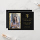 Moderne, elegante Gold Glitzer und schwarze Krankenpflegerin Abschluss-Ankündigung Karte Vorlage mit Ihrem individuellen Foto und Text.