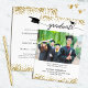 Moderne Skriptdoppelseitige Einladungen mit einem Foto Ihres Absolventen mit Klassenname und Jahr. Personalisieren Sie den Rücken mit Ihren Party-Details.