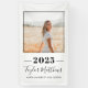 Herzlichen Glückwunsch an Ihren Absolvent mit diesem stilvollen Abschluss-Ankündigung und Party-Banner, das ein Senior-Foto mit minimalistisch schwarz umrissenen Rahmen, Klassenjahr in fett gedruckten Text, und einfache moderne Formulierung, die mit dem Namen Ihres Absolventen in Drehbuch und High School personalisiert werden kann. Klassisches und sauberes Schwarz-Weiß-Farbschema.