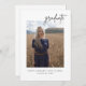 Moderne Skriptdoppelseitige Einladungen mit einem Foto Ihres Absolventen mit Klassenname und Jahr. Personalisieren Sie den Rücken mit Ihren Party-Details.