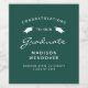 Feiern Sie den Meilenstein Ihres Absolventen stilvoll mit diesen individuellen Weinflaschen-Etiketten aus Abschluss, die mit den Worten "Herzlichen Glückwunsch an unseren Absolvent" in weißem Text auf einem dunkelgrünen Hintergrund, verziert durch ein Paar weißer Mörtel-Pappkappen. Das Wort "Graduate" erscheint in einem anmutigen Skript im Handschriftenstil. Personalisieren Sie es mit dem Namen, der Schule und dem Jahr des Abschlusses.